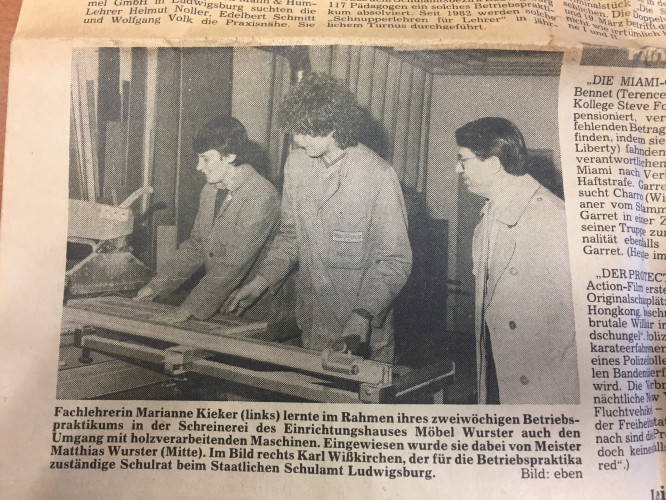 Insgesamt 23 Pädagogen aus dem Schulamtsbereich Ludwigsburg schlüpften in die Rolle des Lehrlings und absolvierten ein 2 wöchiges Praktikum. Einer der 16 Betriebe, die an dieser Aktion teilnahmen war das Einrichtungshaus WURSTER. Zurück in die Vergangenheit...
